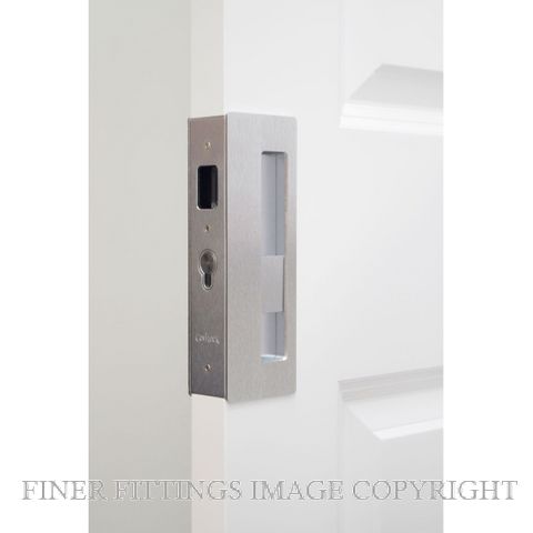 Privacy hardware matches Passage and Key Locking hardware Door slides flush back into the pocket Magnetic latch ensures door doesn’t roll away from the closing jamb Moving parts sit flush until the door closes to minimise wear Available in a range of finishes Suits doors from 40 - 46mm thick |