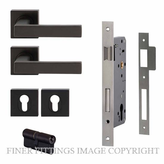 Set Euro Key & Turn Lock Kitset Euro 85mm Centres Matt Black 55mm Square Rose Handles 60mm 32mm-45mm