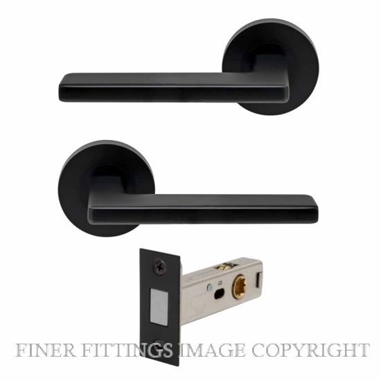 Set Passage Latch Kitset (Bedroom) Matt Black 57mm Round Rose Handles 60mm 32mm-50mm Stock Item Stock Item