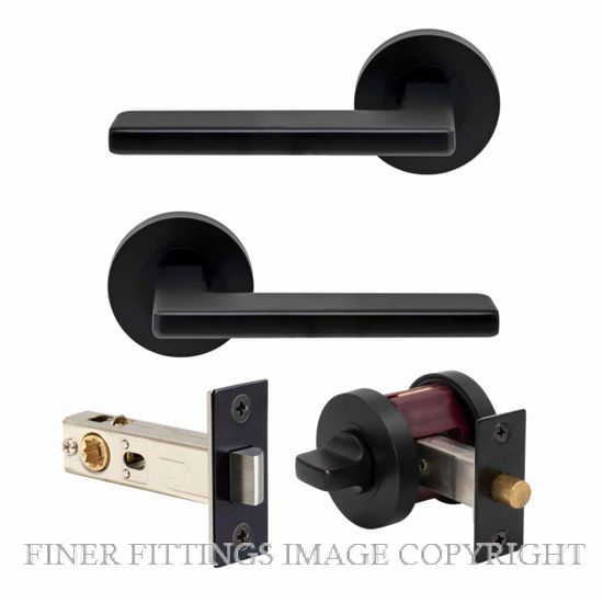 Set Privacy Latch Intergrated Kitset (Bathroom) Matt Black 57mm Round Rose Furniture 60mm 32mm-50mm Stock Item Stock Item