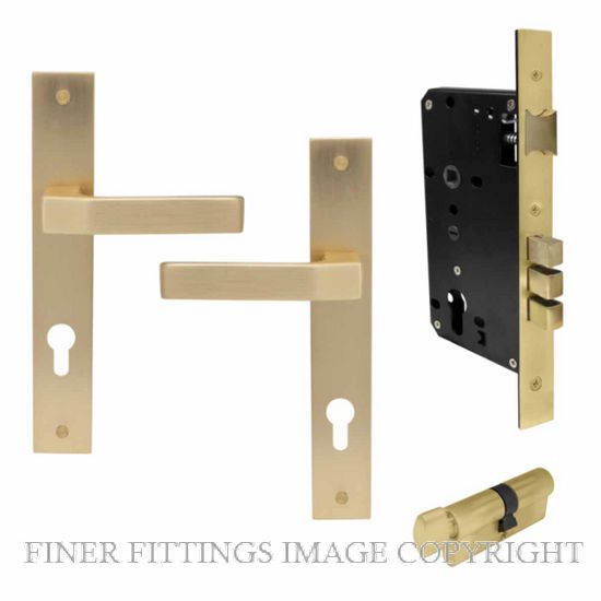 WINDSOR 7360-MSB GALAXY QUBE ELITE LONGPLATE ENTRANCE SET E85 MATT SATIN BRASS