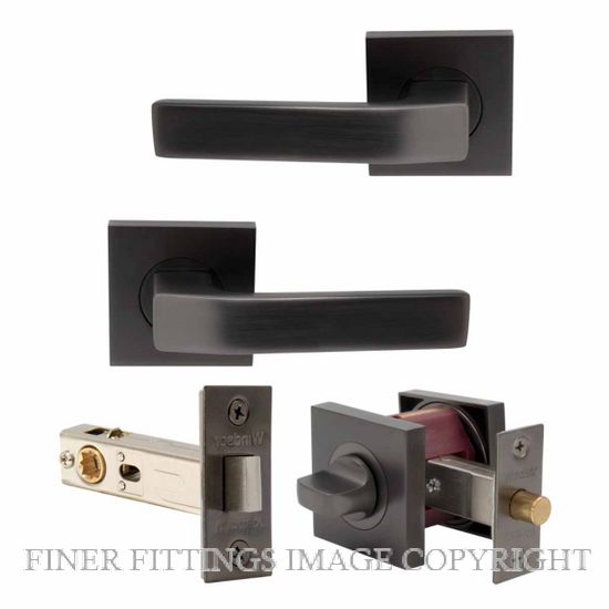 Set Privacy Latch Intergrated Kitset (Bathroom) Graphite Nickel 57mm Square Rose Handles 60mm 32mm-50mm Stock Item Stock Item