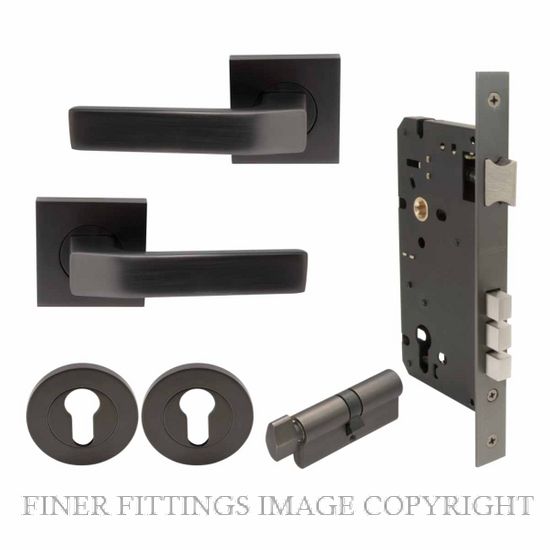 Set Euro Key & Turn Lock Kitset Keyed Alike Graphite Nickel 57mm Square Rose Handles 60mm 32mm-50mm Stock Item Stock Item